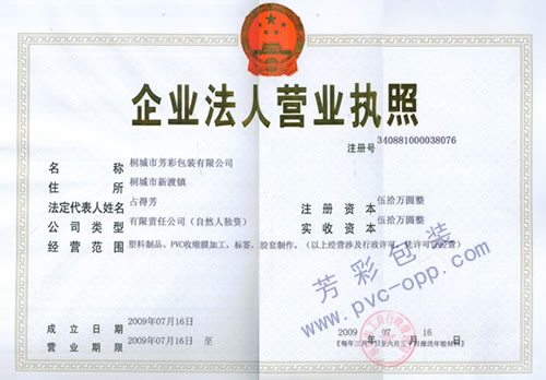 桐城市芳彩包装有限公司营业执照